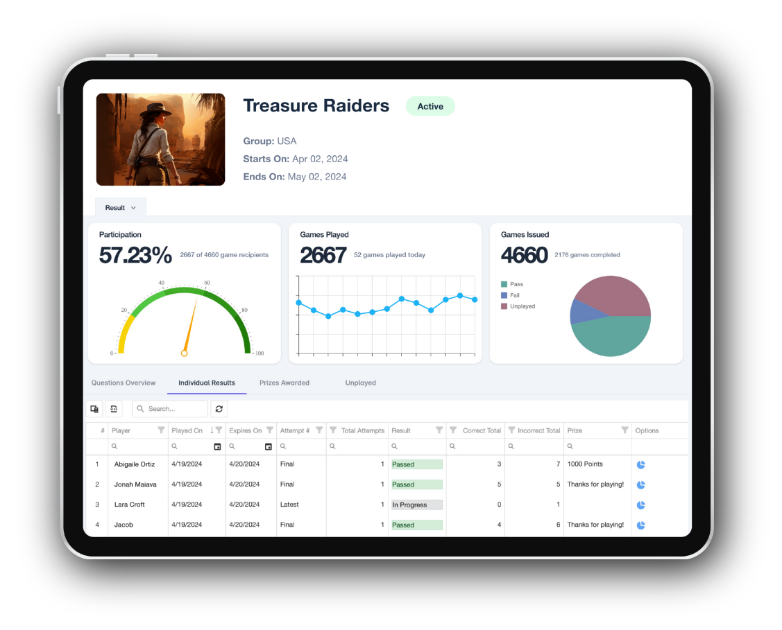 The Treasure Raiders Mission is fully customizable to your content and objectives, with prizes and odds to fit your budget.